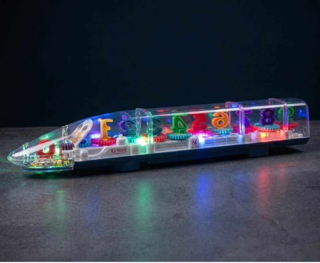 transparent train toy with light music
